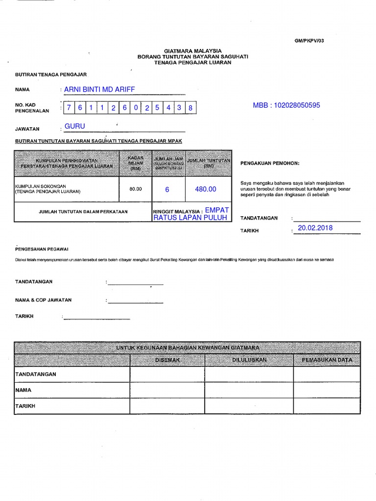 Disebabkan skim ni kena claim korang perlu bayar dulu dan isi borang bayaran ganti belanja bgb untuk dapatkan bantuan tu. Resit bertulis tangan tidak diterima. Contoh resit yang dibenarkan seperti di lampiran a. Untuk mendapatkan kelulusan bayaran.