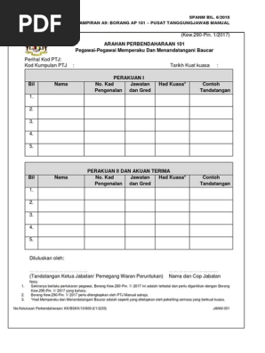 Borang 101. Kuasa memperakui baucar baucar untuk pembayaran di bawah arahan perbendaharaan 101 1 3 5 6 peraku ii 1. Kad jawatan gred pengenalan had kuasa had kuasa. However i only file my borang 1 and 2 a week later fyi you can file the two forms immediately after you got a place in the firm i set my journey early on the 16th april to high court of malaya in jalan duta. It s near matrade building and the landmark before you reached there.