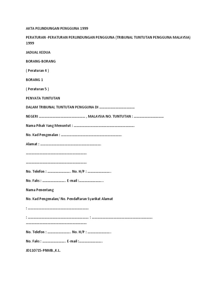 Bagi aku dalam kes2 macam ni kita kena pergi sendiri kat kaunter dia dapat direct information atau call je kalau tak paham apa2. Pejabat pendaftaran akan meletakkan meterai tribunal pada 4 salinan itu dan mengembalikan dua. The tribunal for consumer claims malaysia is an independent body established under section 85 part xii of the consumer protection act 1999 act 599. Apabila anda menerima borang ini yang telah dimeteraikan dengan meterai tribunal anda adalah didakwa oleh pihak yang menuntut.