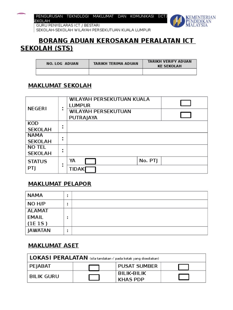 Borang tuntutan elaun perpindahan rumah. Pa 9 borang aduan kerosakan aset alih universiti kew pa 9 borang aduan kerosakan aset alih doc. Borang aduan kerosakan peralatan ict unit teknologi maklumat biro pengaduan awam no. Borang aduan kerosakan peralatan ict.