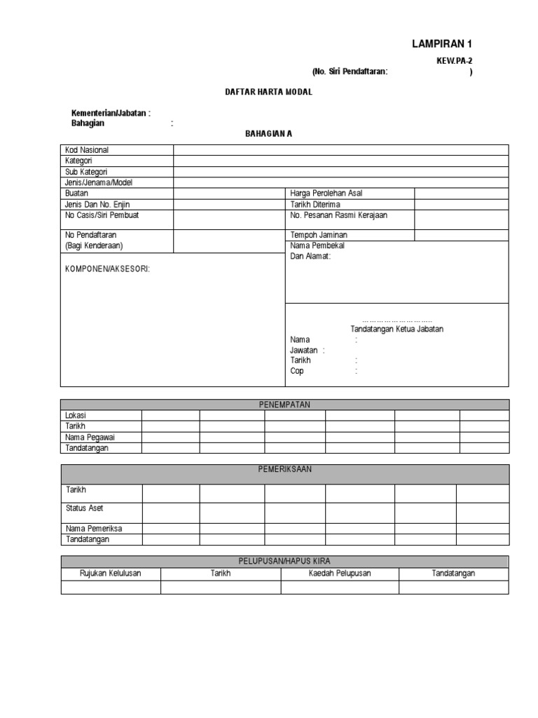 Daftar harta modal 1 kategori kerosakan sila tandakan d perkakasan komputer monitor keyboard mouse printer scanner cd dvd rom rw lcd projektor laptop ups. Borang pembaikan dan penyelenggaraan kuaters. Pa 8 laporan tahunan harta modal dan inventori kew pa 8 laporan tahunan aset alih doc. Pesanan rasmi kerajaan beserta.