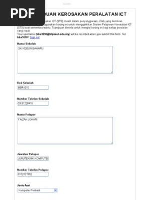Borang Aduan Kerosakan Peralatan Ict Sekolah