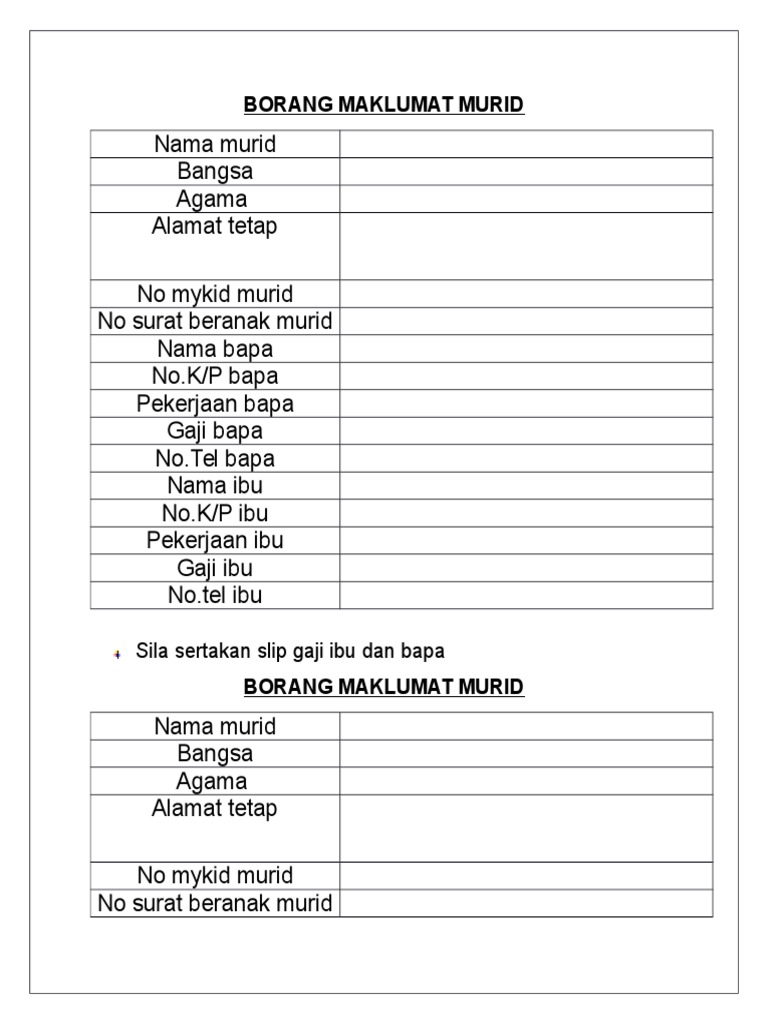 Melalui borang berformat excel ini ibubapa tidak perlu lagi menulis. Rasanya sama saja semua sekolah sebab menggunakan borang dari kementerian pendidikan malaysia. Taip dan print sahaja. Kemudahan muat turun boleh didapati mengikut tahun tingkatan.