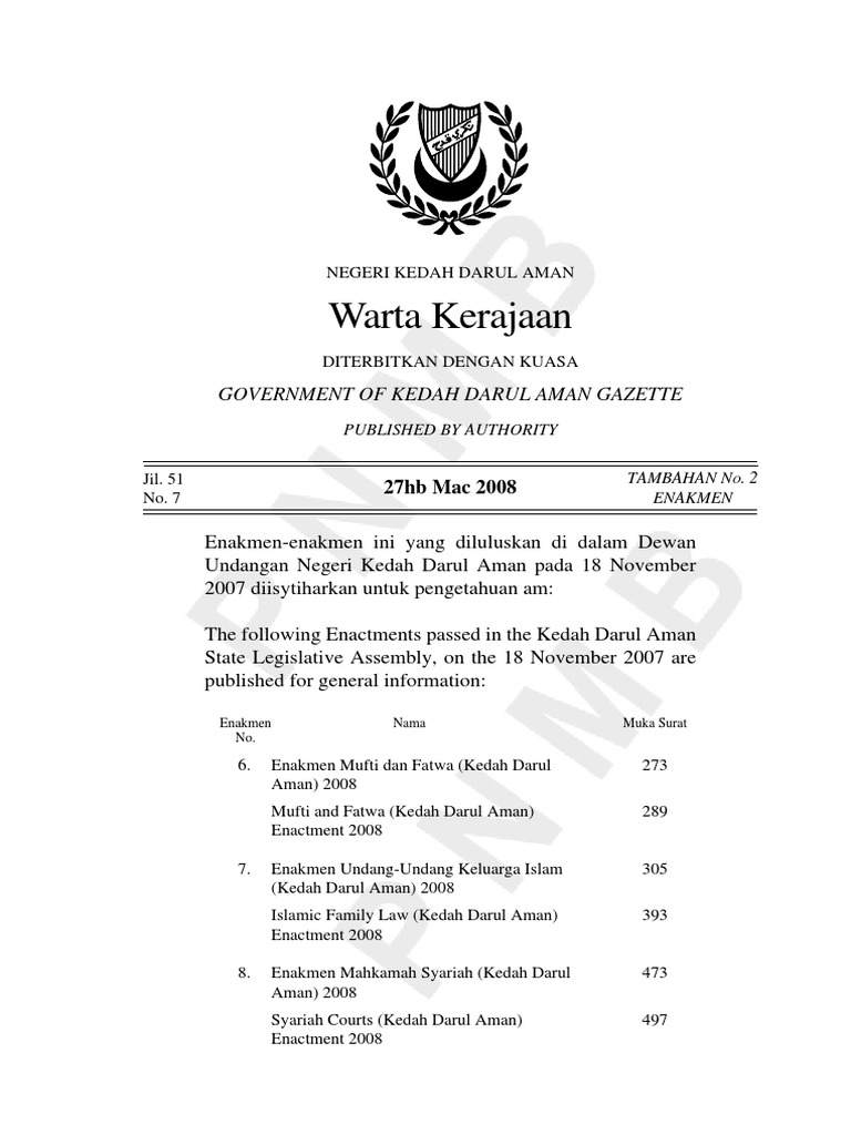 604 734 3755 fax. Setelah menyediakan dokumen dokumen penting di atas mulakan prosedur untuk akad nikah mengikut negeri dan daerah masing masing. Undang undang keluarga islam negeri yang sedang berkuatkuasa di negeri negeri adalah seperti berikut. Majlis agama islam negeri kedah darul aman bangunan wan mat saman 05000 alor setar kedah darul aman tel.