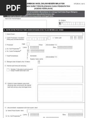 Guideline for personal tax clearance form cp21 cp22a cp22b. Atas majikan perlu mendapatkan sijil penyelesaian cukai dari lhdn dengan mengemukakan borang cp22a p ekerja berhenti kerja bersara meninggal dunia bagi pekerja swasta borang cp22b p ekerja berhenti kerja bersara meninggal dunia bagi pekerja kerajaan borang cp 21 p ekerja yang hendak meniggalkan malaysia s ebelum. Atau secepat yang mungkin apabila seseorang pekerja meninggal dunia nama alamat majikan no.