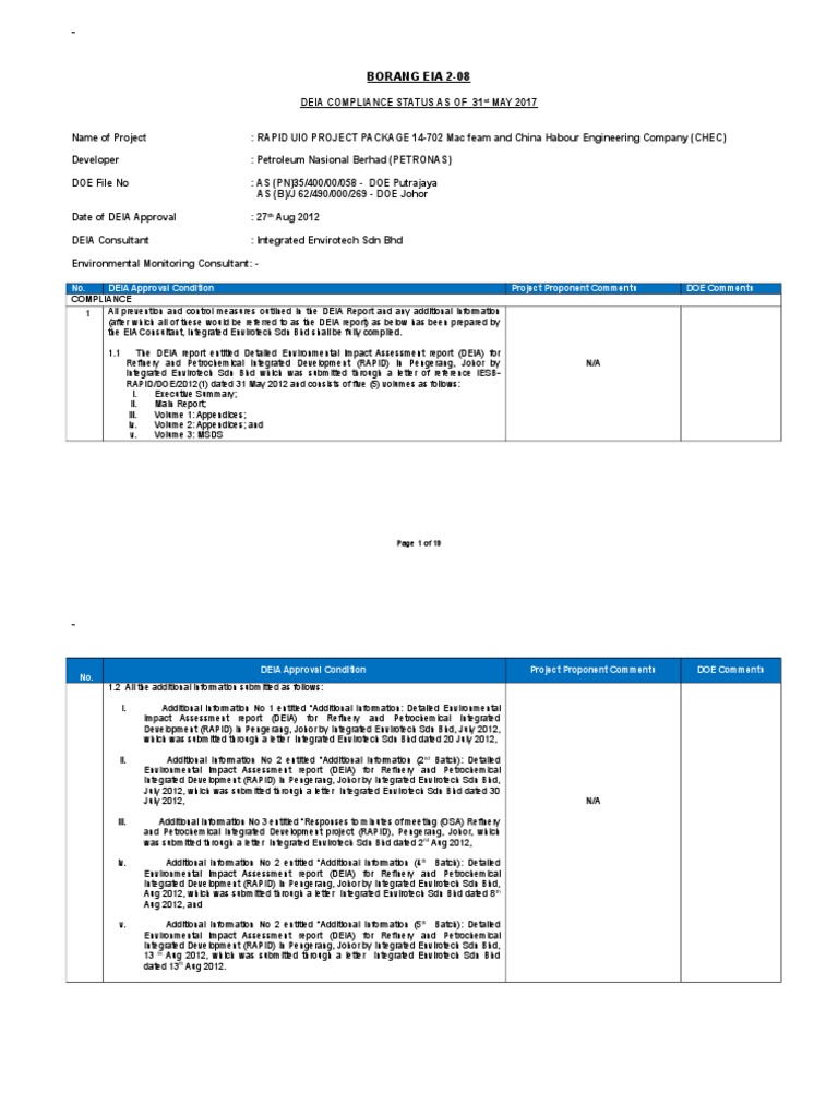 Borang eia 1 08 as in lampiran 6 within 90 days from this eia approval later date. Compliance schedule for eia approval conditions. 03 8888 9987 03 8889 1040. Date of eia report approval.