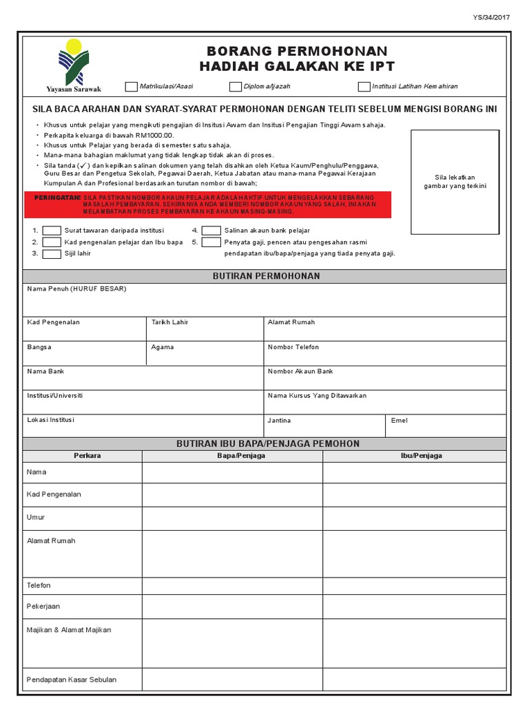 Hantar borang permohonan yang dicetak dan dokumen yang diminta ke yayasan sarawak. Borang permohonan hadiah pengajian ipt kerajaan negeri selangor nama penuh seperti dalam kad pengenalan.