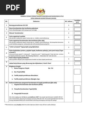 Dasar keselamatan dan kesihatan pekerjaan. Permohonan boleh dilakukan dengan mengisi borang secara atas talian. Sila berikan maklumat seperti nama dan no. Borang ini telah dibangunkan dengan konsep membenarkan kesemua maklumat yang diperlukan kecuali tandatangan terus diisi ditaip dengan menggunakan komputer.
