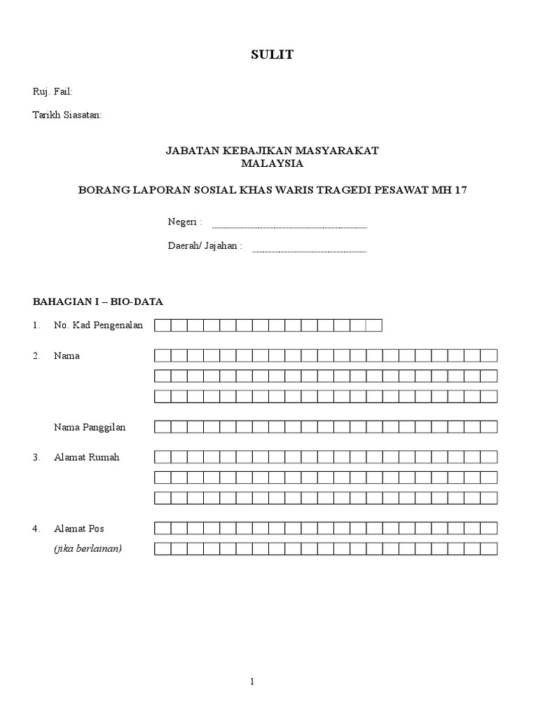 Borang jkm 21. 1 hadirkan diri ke pejabat kebajikan masyarakat daerah. 2 minta jkm 18 borang permohonan bantuan 3 lengkapkan borang jkm 18 borang permohonan bantuan 4 bawa dokumen sokongan yang diperlukan semasa hadir ke pejabat kebajikan masyarakat daerah. Kami hanya mendapati borang permohonan bantuan ibu tunggal yang boleh dipohon di borang jkm18. Anda perlu memuat turun borang berikut dan menghantar permohonan menggunakan borang secara manual di pejabat kebajikan masyarakat daerah jajahan bahagian jabatan kebajikan masyarakat negeri yang berdekatan dengan kawasan masing masing.