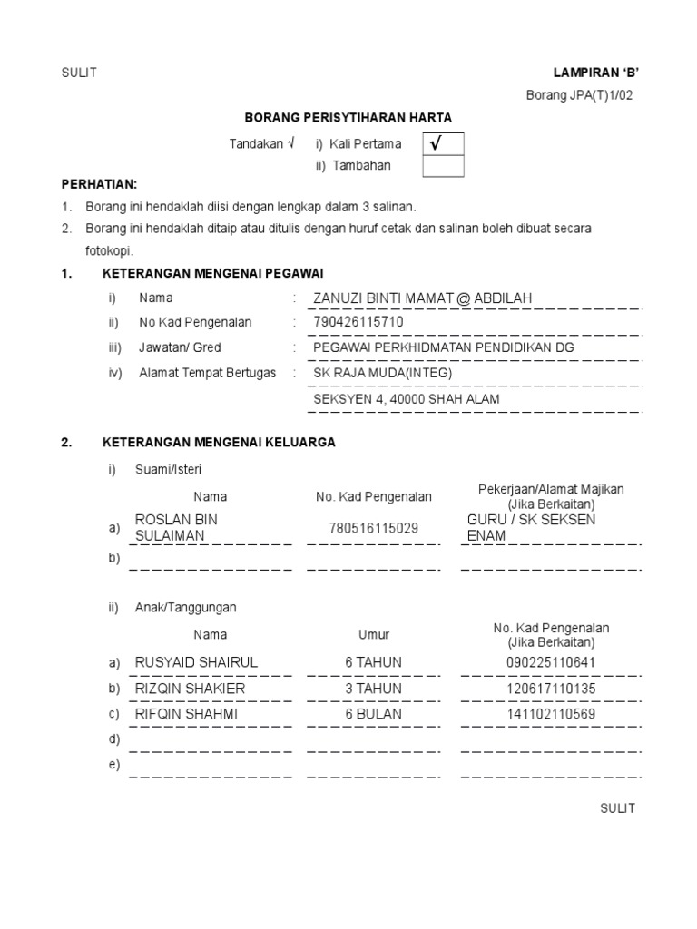 Borang jpan harta 2 2015. Borang ini hendaklah diisi dengan lengkap dengan ditaip atau ditulis dengan huruf cetak. Bagi pegawai yang sedang berkhidmat yang belum lagi membuat perisytiharan. Borang perisytiharan harta diisi dalam 3 salinan tandakan kali pertama tambahan perhatian. Posted by mohd faisol othman at februari 06 2014.