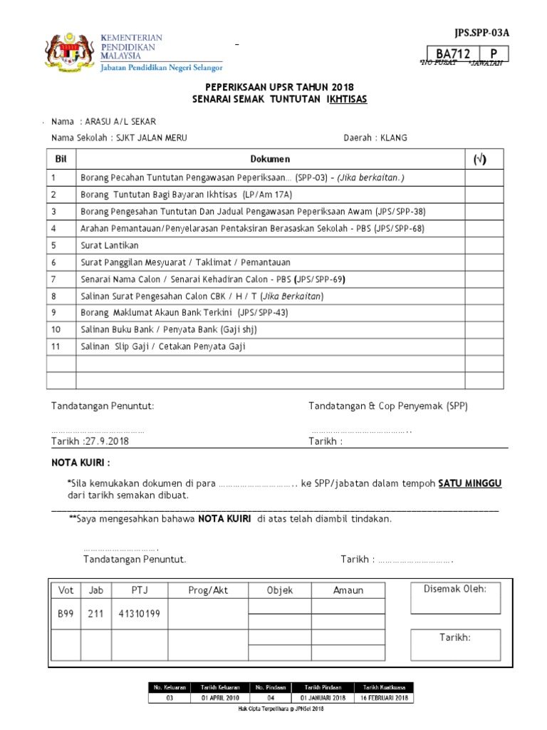 Jump to page. Jps spp 03 pin 3 12 jika berkaitan borang tuntutan ikhtisas lp am17a borang pengesahan tuntutan dan jadual pengawasan peperiksaan awam jps spp 38 pemantauan penyelarasan pentaksiran berasaskan sekolah jps spp 68 utk pbs shj surat lantikan panggilan mesyuarat senarai nama calon senarai kehadiran calon jps spp 69. Laporan khas temu duga spp g 002 muat turun. Permintaan dikirim kepada.