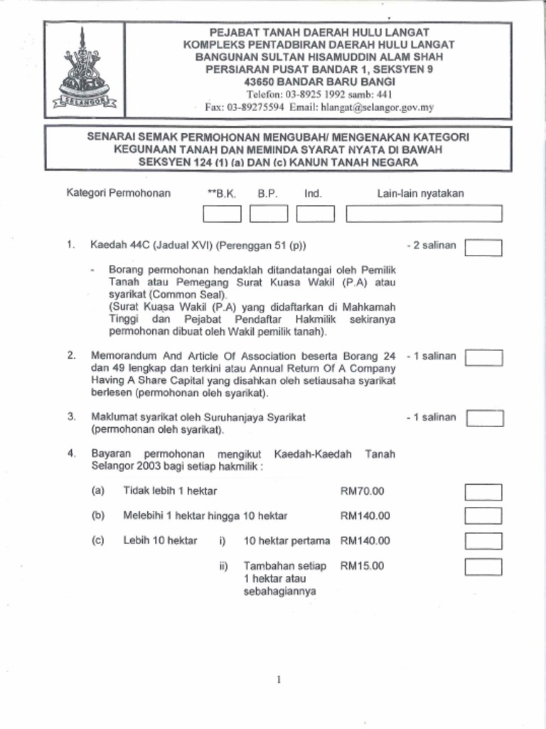 Carian rasmi asal v. Laporan cadangan pemajuan 3 salinan iv. Salinan cukai tanah semasa. Muat turun senarai semak muat turun borang kaedah 44c add to favorites.