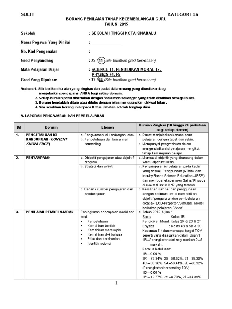 32 34 44 48 52 sila bulatkan gred berkenaan. Borang penilaian tahap kecemerlangan guru tahun. 34 38 48. Sulit kategori 1b borang penilaian tahap kecemerlangan guru tahun.