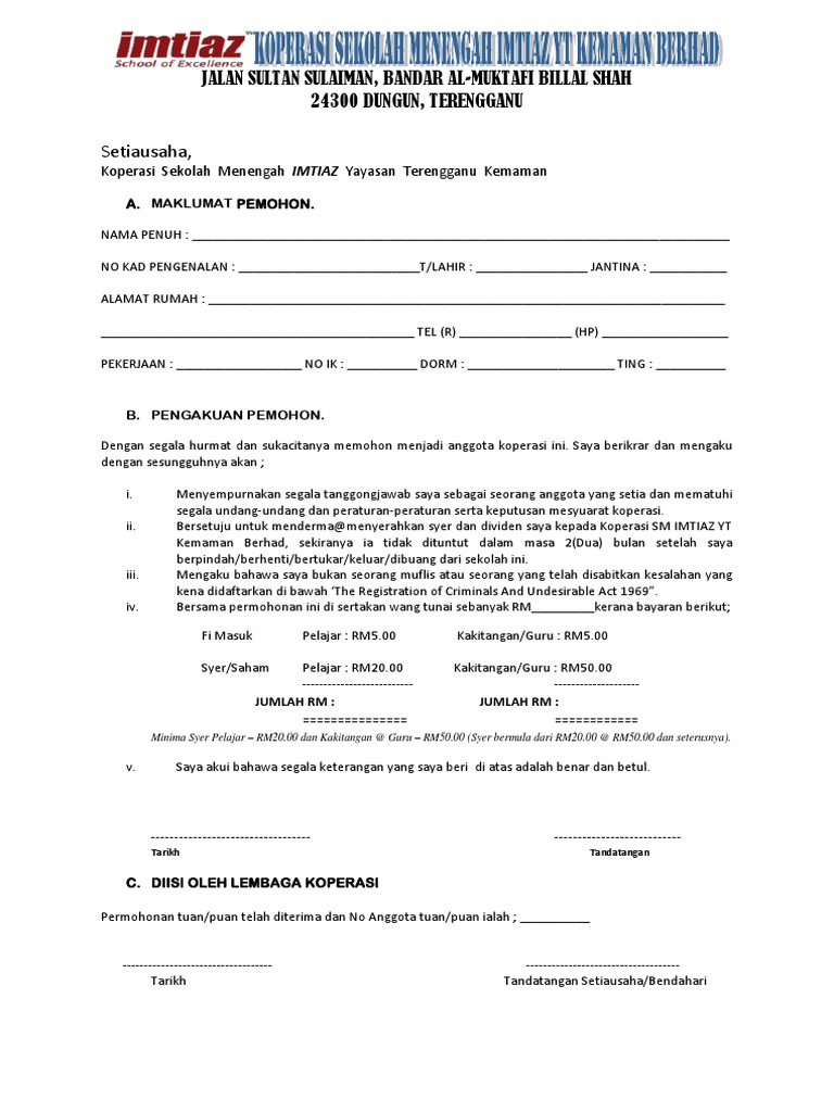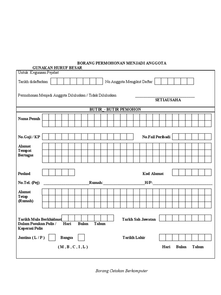 Isi borang permohonan berhenti menjadi anggota koperasi dan sertakan dokumen yang berkenaan. Pemulangan yuran dan saham selepas 6 bulan notis diterima oleh koperasi mengikut undang undang kecil 22 1. Sila penuh isikan borang ini dengan huruf besar. Koperasi permodalan felda malaysia berhad.