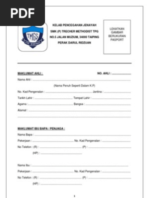 Borang keahlian kelab pencegahan jenayah. Keahlian baru perlu disokong oleh mana mana ahli jawatankuasa kelab anti jenayah dadah malaysia. Kelab pencegahan jenayah smk p trecher methodist tpg no 5 jalan muzium 34000. Kelab pencegahan jenayah ialah kelab yang ditubuhkan di semua sekolah rendah dan sekolah menengah kerajaan merujuk kepada surat pekeliling ikhtisas bil 5 2006 kementerian pelajaran malaysia. Mohd taufek mohd noh pahang 3 mac 2020 satu acara yang julung kalinya diadakan dengan maktab rendah sains mara mrsm bentong pahang dipilih oleh mara untuk mencipta sejarah apabila dilantik sebagai kumpulan pertama kelab pencegahan jenayah mrsm se malaysia yang dilancarkan oleh ybhg.