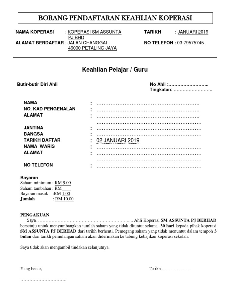 Borang keahlian koperasi. Koperasi polis diraja malaysia berhad. No pekerja no matrik. Borang permohonan menjadi anggota member application form pemberhentian ahli koperasi sejati berhad dan pemberhentian potongan gaji yuran keahlian di perkhidmatan biro angkasa member resignation. Borang permohonan keahlian koperasi hartanah anggun berhad.