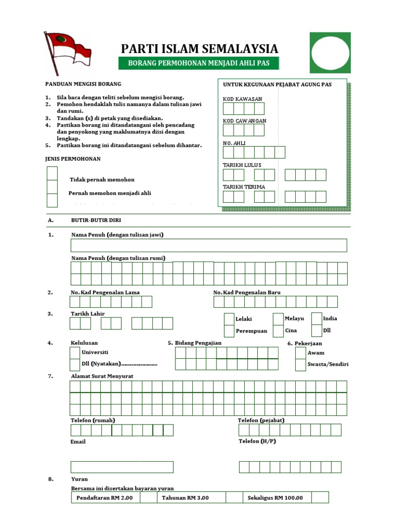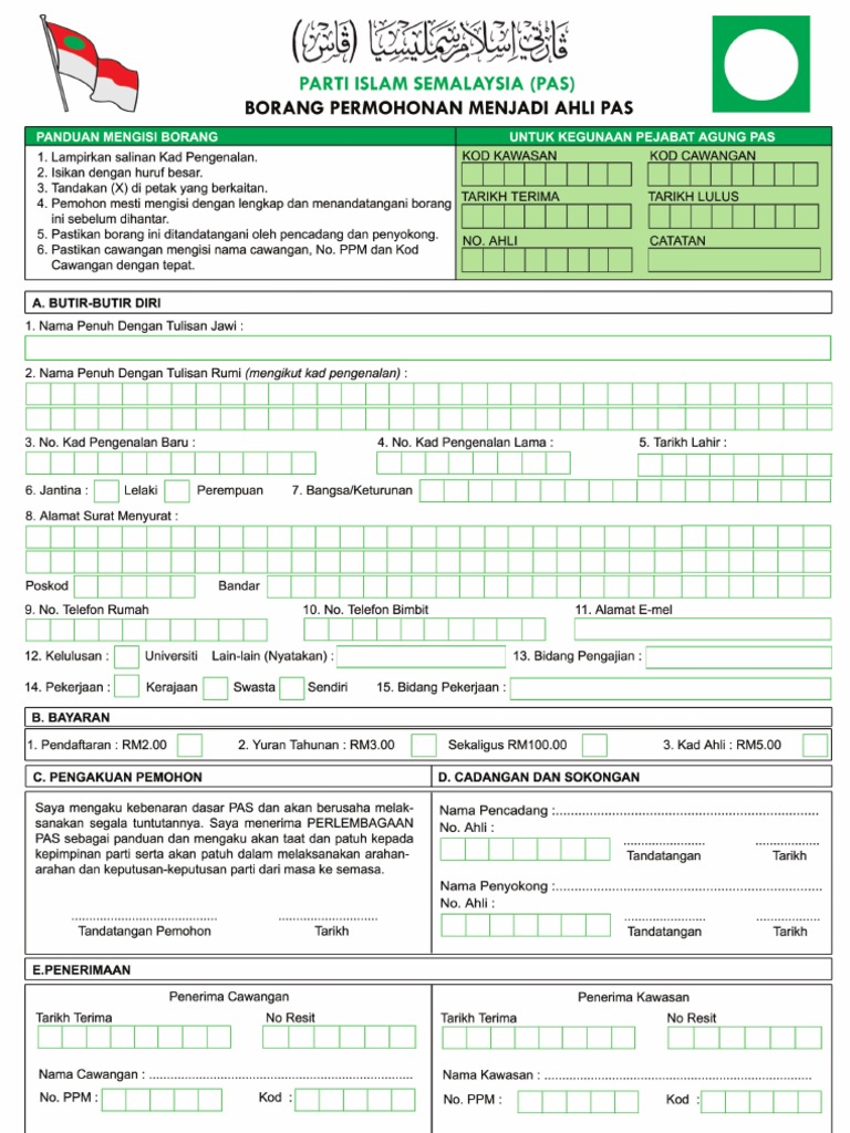 Permohonan melalui atas talian. Permohonan secara serahan tangan emel. Pejabat agung pas pusat no. Muat turun borang keahlian pas syarat syarat adapun syarat untuk menjadi seorang ahli pas itu ialah.