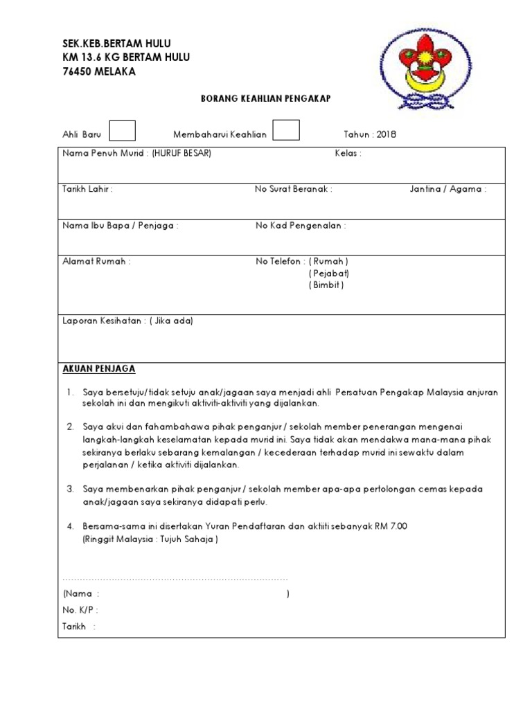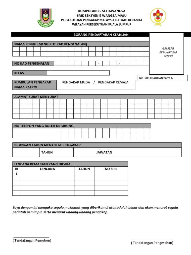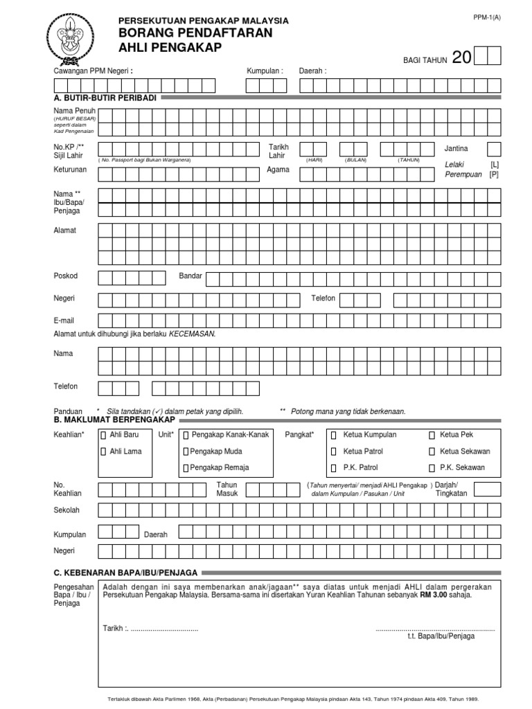 Borang keahlian pengakap malaysia. Berikut cikgu kongsi borang keahlian pengakap 2020 seperti yang telah di muat naik oleh page facebook persekutuan pengakap negeri terengganu. Adalah menjadi satu kesalahan menjalankan aktiviti kepengakapan tanpa pendaftaran. Kuasa penganjur perlu memastikan semua pemimpin setiap kumpulan membuat pendaftaran keahlian bermula bulan mac. Pendaftaran keahlian pengakap 2020.