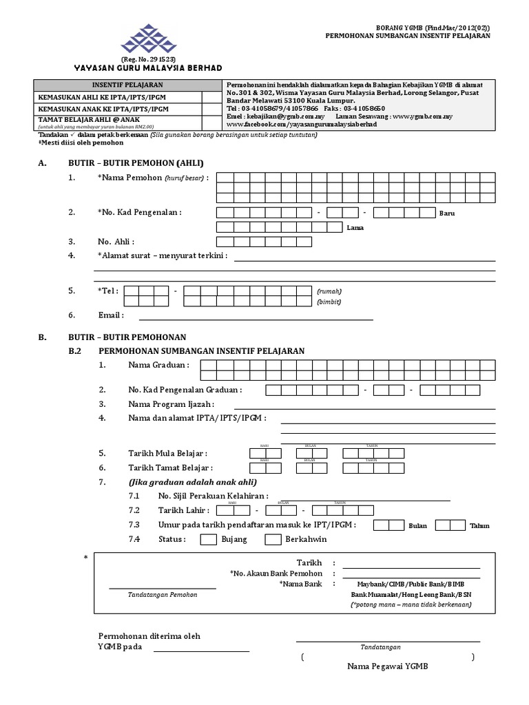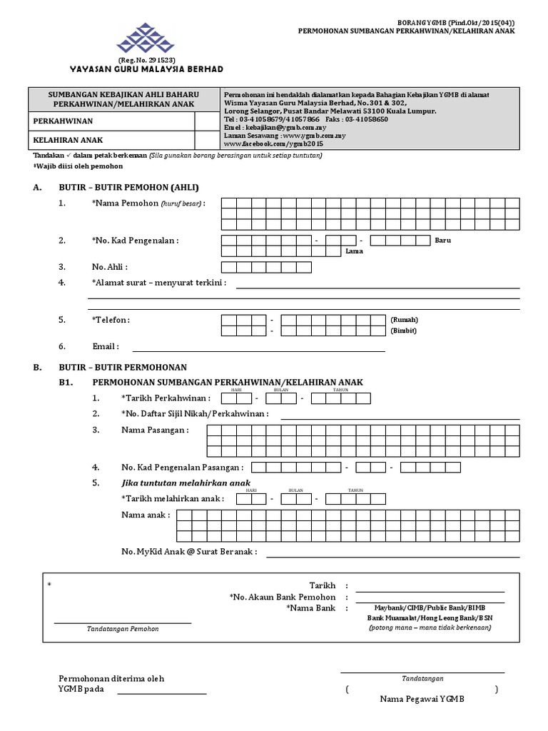 Borang keahlian ygmb. Borang kemaskini maklumat keahlian. Hanya ahli ahli kppk yang berfaedah serta menjelaskan bayaran tabung kebajikan layak untuk faedah faedah dari tabung ini. Yayasan guru malaysia berhad ygmb 301 302 wisma ygmb lorong selangor pusat bandar melawati jalan ulu kelang 53100 kuala lumpur. Baru bayar yuran keahlian rm94 pun tetap terima manfaat khairat kematian.