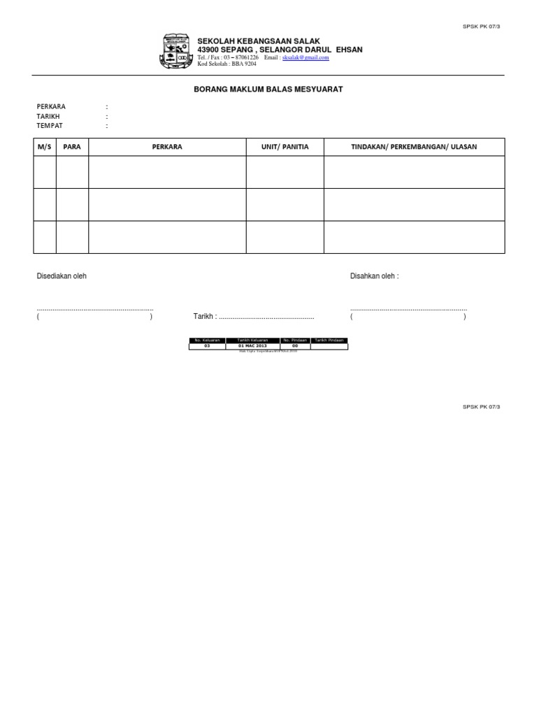 Borang kehadiran mesyuarat spsk selangor. Pk 03 pengurusan pembelajaran pengajaran pdp lampiran pk03. Kehadiran mesyuarat tertakluk kepada sop yang dikeluarkan oleh kerajaan dari masa ke semasa. Konvensyen tahunan umno negeri ialah pada 1 11 20 hingga 23 11 20. Borang maklumbalas minit mesyuarat mksp bil.