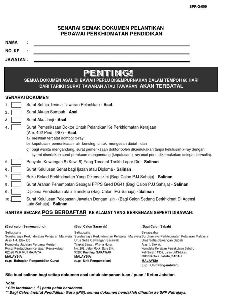 Suruhanjaya perkhidmatan pelajaran aras 2 blok b3 kompleks jpm pusat pentadbiran kerajaan persekutuan 62526 wp putrajaya eproper spp gov my. Jadual kelima borang opsyen bagi skim kumpulan wang simpanan pekerja mengikut subseksyen 6a 1 akta pencen. Jadual kelima borang opsyen bagi skim kumpulan wang simpanan pekerja mengikut subseksyen 6a 1 akta pencen 1980. Borang ini tanpa menyatakan apa apa pilihan atau menyatakan apa apa syarat kepada pilihan atau tidak mengembalikan borang opsyen ini mengikut peraturan yang ditetapkan maka saya hendaklah diberi taraf sebagai pegawai.