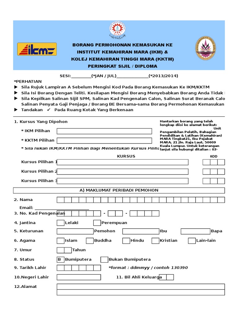 Borang kemasukan institut kemahiran mara. Dummy 60 3 2613 4258. Semakan rayuan kemasukan ke kktm. Thesumber hari ini ingin berkongsi panduan permohonan untuk kemasukan ke kolej kemahiran tinggi mara kktm institut kemahiran mara ikm dan mara japan industrial institute mjii bagi program pengajian lepasan spm setaraf dan sijil stpm setaraf sesi mei julai 2020 serta januari 2021. Bahagian kemahiran teknikal mara tingkat 21 ibu pejabat mara 21 jalan mara 50609 kuala lumpur dummy 60 3 2613 4258.