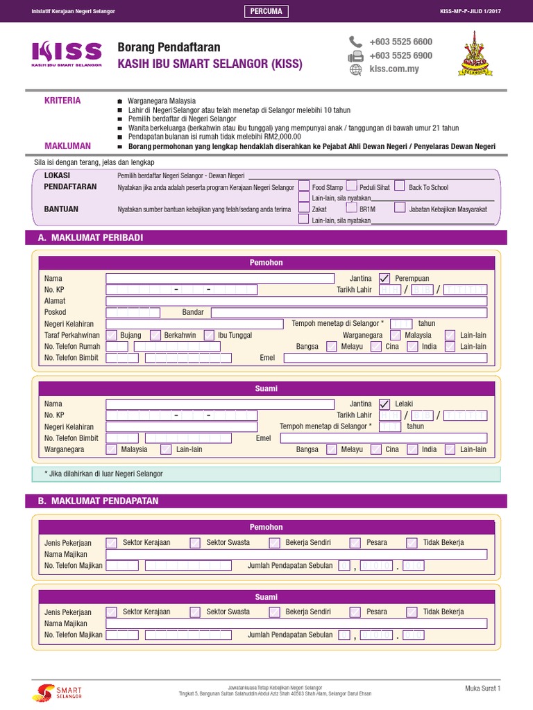 Permohonan kasih ibu smart selangor. Muat turun borang program kiss. Permohonan kasih ibu smart selangor online dan manual. Hubungi kami 1800 22 6600 emel admin selcare my.