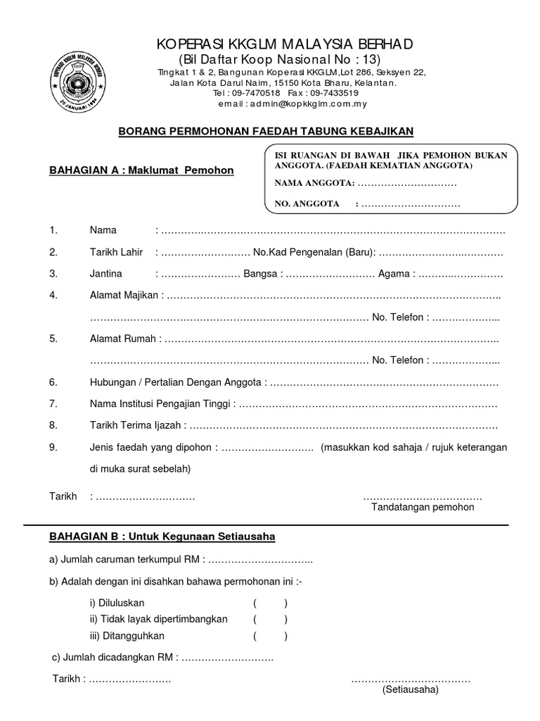 Namun begitu koperasi kkglm m bhd didaftar secara rasmi pada januari 1994 di kota bharu kelantan. A borang permohonan pinjaman. Sila baca isi perjanjian tawarruq tersebut. Koperasi kkglm m bhd.