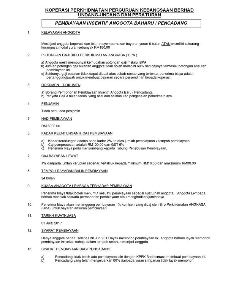 Selama ini kppk bhd telah mengutamakan perkhidmatan kepada anggota dan disamping itu menjaga kepentingan koperasi. Kppk be r had tarikh koperasi perkhidmatan perguruan kebangsaan berhad 13 jalan murai 2 baw kompleks off jalan ipoh 51100 kuala lumpur. Permohonan menjadi anggota hendaklah dibuat dalam borang rasmi koperasi ini dan dialamatkan kepada setiausaha koperasi atau pegawai koperasi yang dipertanggungjawabkan. Tiap tiap permohonan menjadi anggota hendaklah disertakan dengan fi masuk sebanyak rm30 00 ringgit.