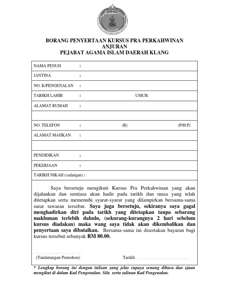 Borang Kursus Kahwin Paid Klang
