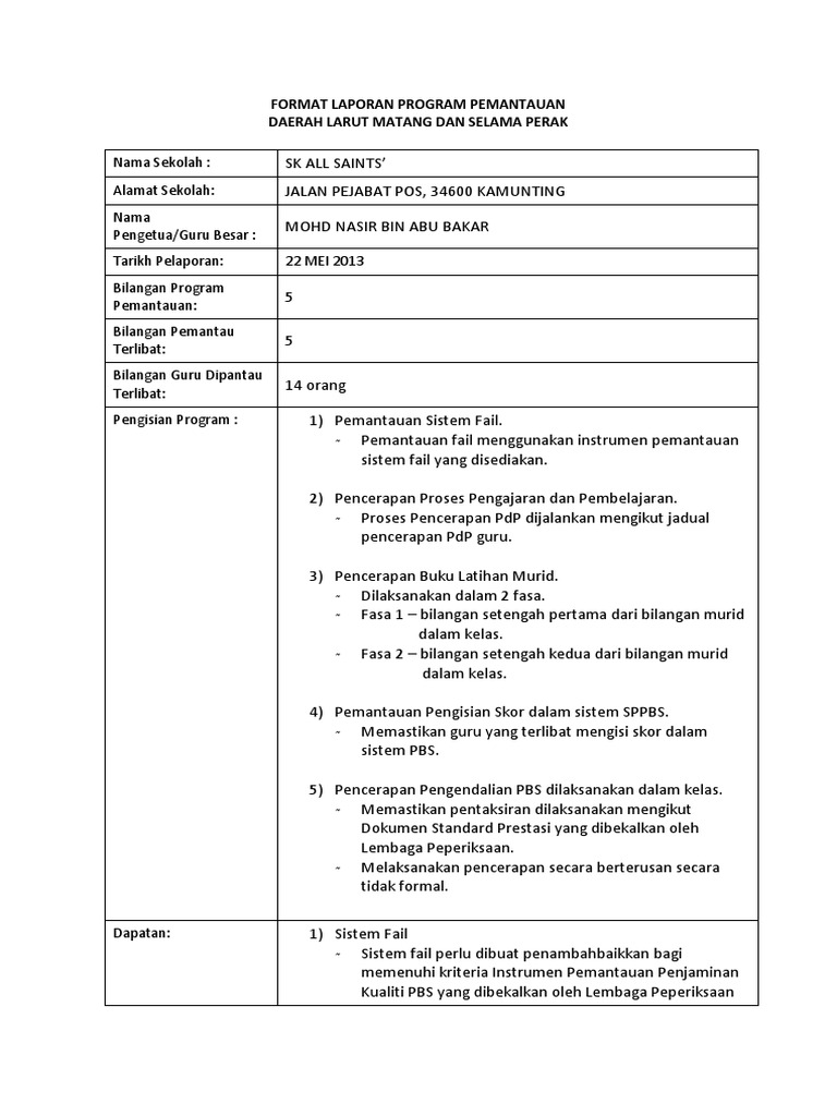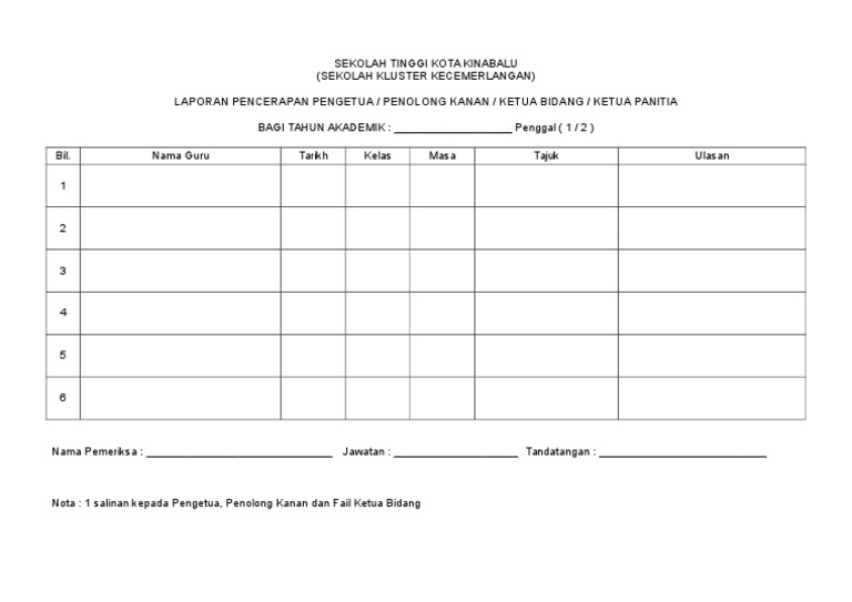 Borang laporan pencerapan guru. Pengajaran dan pemvelajaran guru yang berkesan akan ditentukan melalui pencerapan guru oleh guru besar pengetua dan pentadbir penolong kanan. Boleh muat turun versi pdf pada pautan. Borang semakan hasil kerja murid pk05 1 laporan penyebaran kssm lain lain. Malahan fail panitia ini boleh dijadikan salah satu eviden bagi skpmg2 3 1 pengurusan kurikulum di bawah aspek pengurusan mata pelajaran.