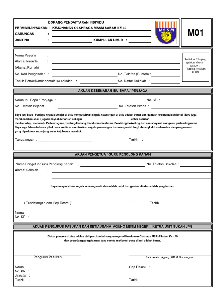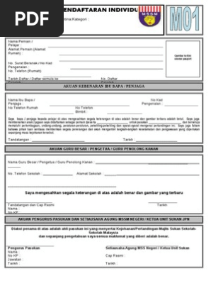 Borang m01 olahraga. Borang m01 borang m02 mssm. Simpan simpan borang m01 untuk nanti 0 0 mendukung tandai dokumen ini sebagai bermanfaat 0 0 menolak tandai dokumen ini sebagai tidak bermanfaat tanamkan bagikan. Borang m01 excel sns2unet 2013 sistem pengurusan ks2018 hakcipta dipelihara allah swt. Berminat dengan sistem ini sila hubungi 0194165117 saridan untuk urusan pendaftaran peserta sila hubungi admin.