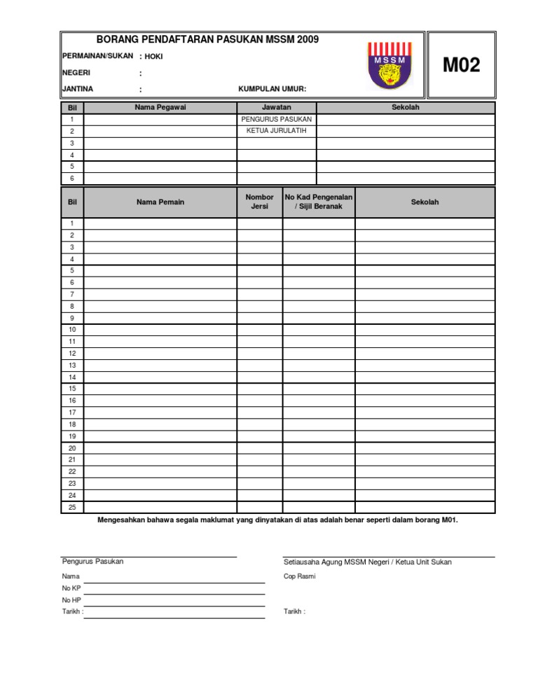 Borang pendaftaran pasukan mssm permainan sukan. Borang pendaftaran m01 m02 r01 dan r02 untuk guru. 20 q 120 10 11 20 12 20. Borang m01 m02 picture published and uploaded by www.