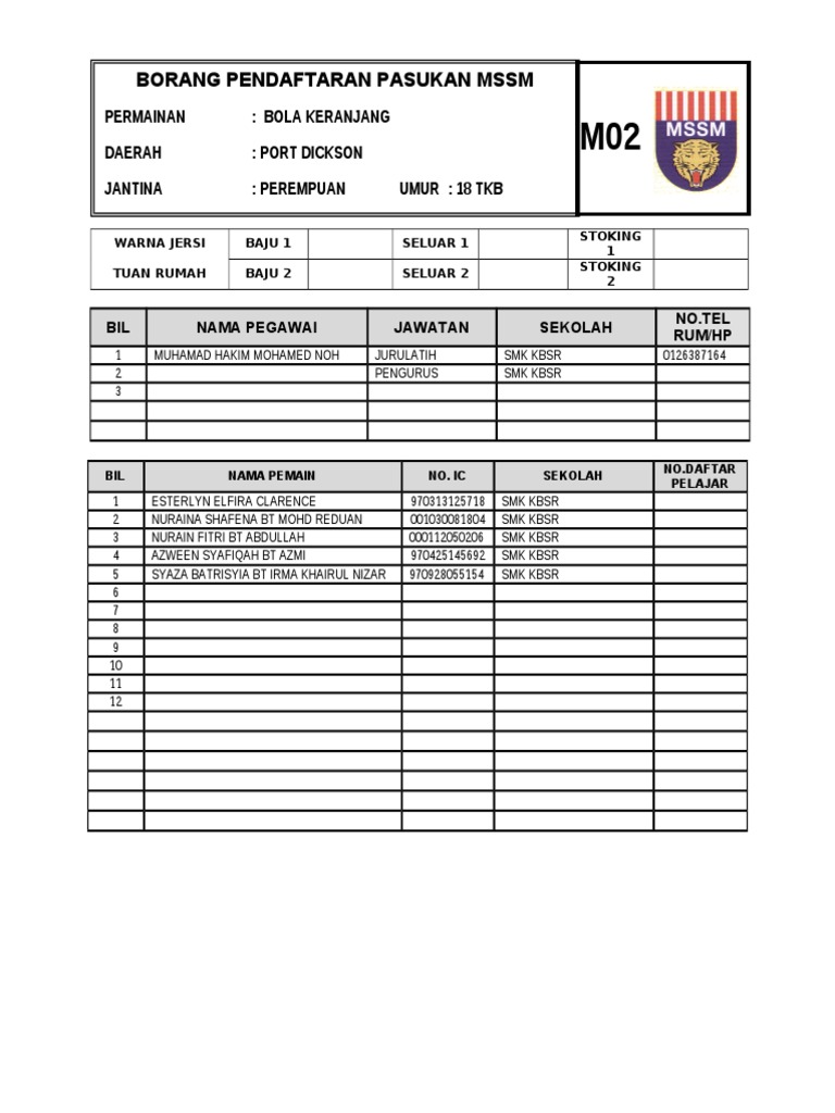 Borang m02 doc. Download as doc pdf txt or read online from scribd. Download as doc pdf txt or read online from scribd. 0 0 upvotes mark this document as useful 0 0 downvotes mark this document as not useful embed. Borang pendaftaran pasukan mssm permainan sukan.