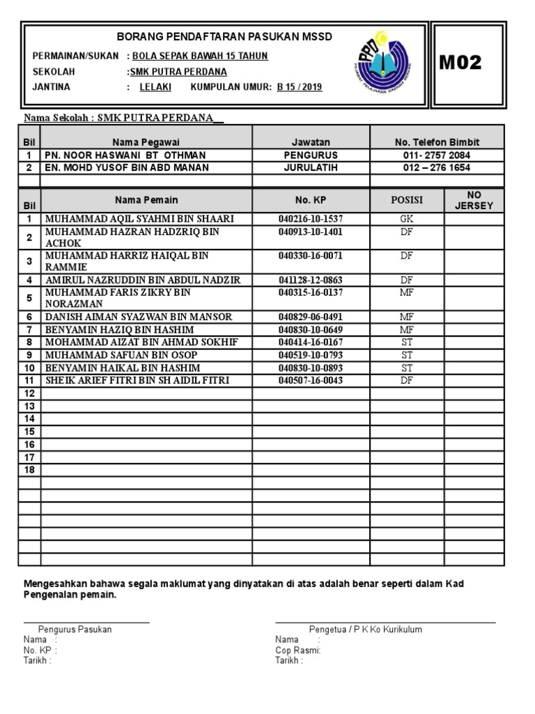 Borang pendaftaran m01 m02 r01 dan r02 untuk guru. Mssd kota setar kali ke 36 tahun 2018 6 9 mac 2018 stadium darulaman. Borang m01 m02 have a graphic from the other. M02 bil nama pegawai jawatan sekolah 1 2 3 4 5 6 bil nama pemain no.