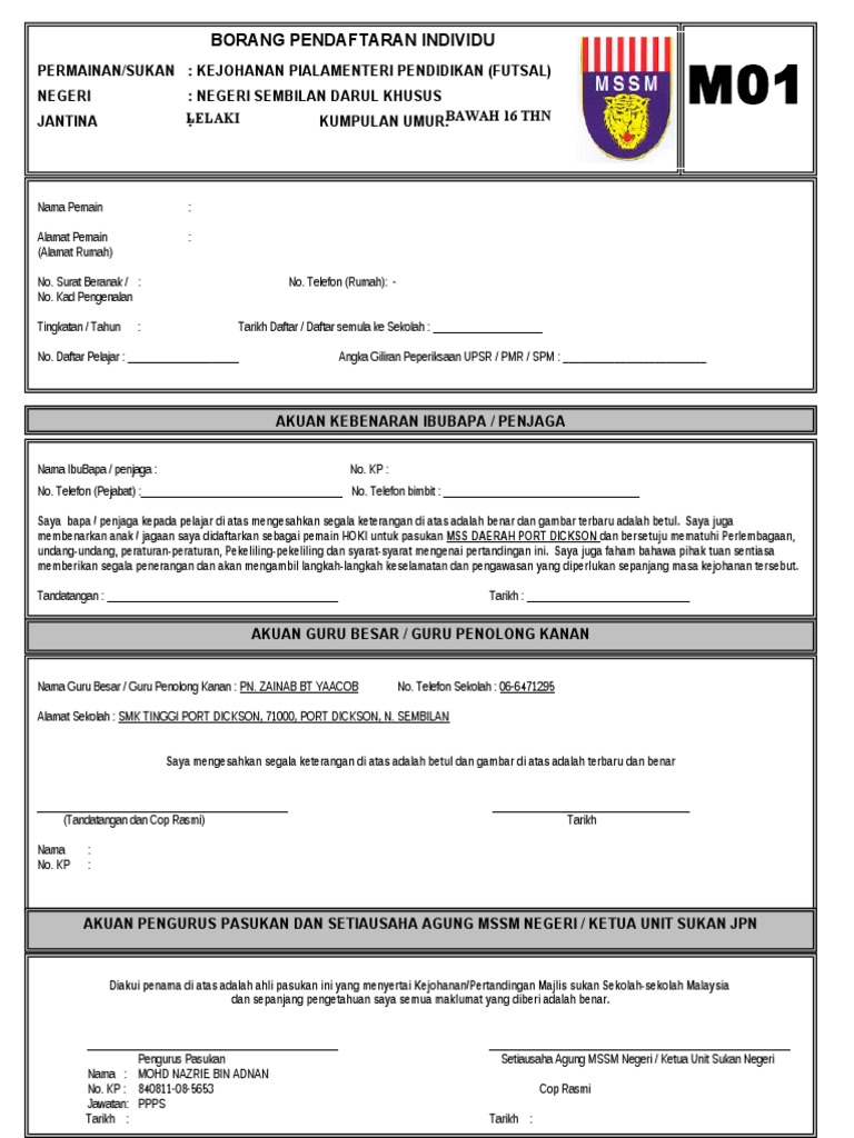 Borang m02 word. Angka giliran peperiksaan awam pmr spm. Kp sekolah 1. Borang pendaftaran individu permainan sukan. Khairulsham bin noh bandar seri jempol negeri sembilan darul khusus malaysia guru pendidikan jasmani pendidikan kesihatan smk bandar baru serting f.