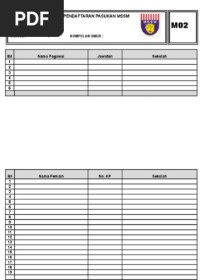 M01 nama pemain. Saridan abd hamid no tel. M02 bil nama pegawai jawatan sekolah 1 2 3 4 5 6 bil nama pemain no. Borang pendaftaran m01 m02 r01 dan r02 untuk guru.