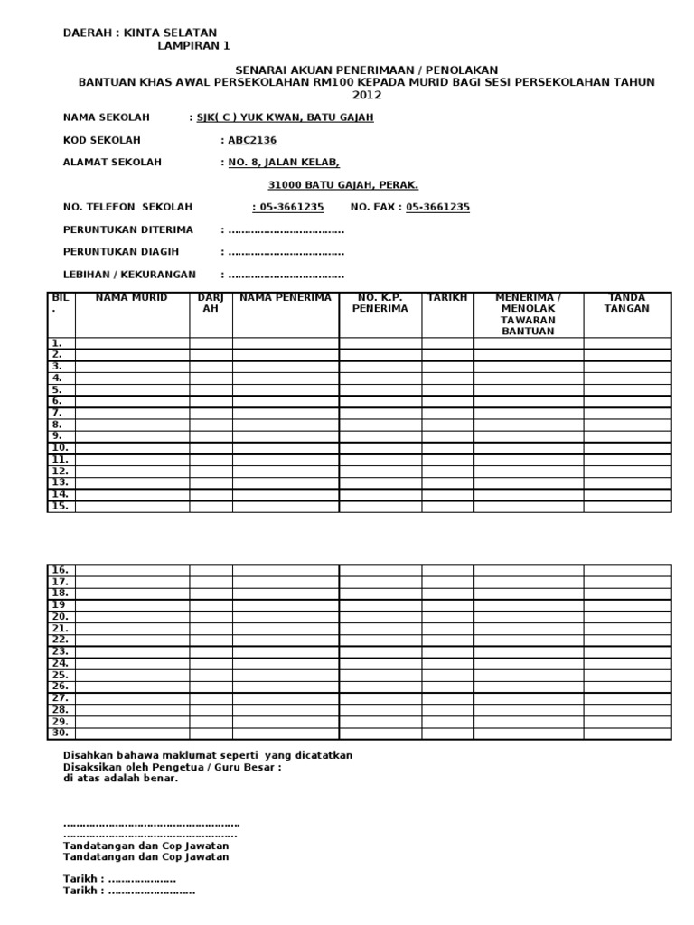 Borang maklum balas penerimaan bantuan persekolahan. Surat siaran mengenai pelaksanaan bantuan awal persekolahan bap tahun 2020 bagi sekolah kerajaan sk dan sekolah bantuan kerajaan sbk pdf muat turun surat siaran 449 kb hits. Bantuan prihatin nasional merupakan satu inisiatif daripada kerajaan untuk membantu golongan berpendapatan rendah dan m40 yang terjejas akibat pelaksanaan perintah kawalan pergerakan. Tarikh pembayaran bantuan awal persekolahan rm100 tahun 2020. Keluarkan resit pejabat rp01 kepada pihak menyalurkan bantuan.