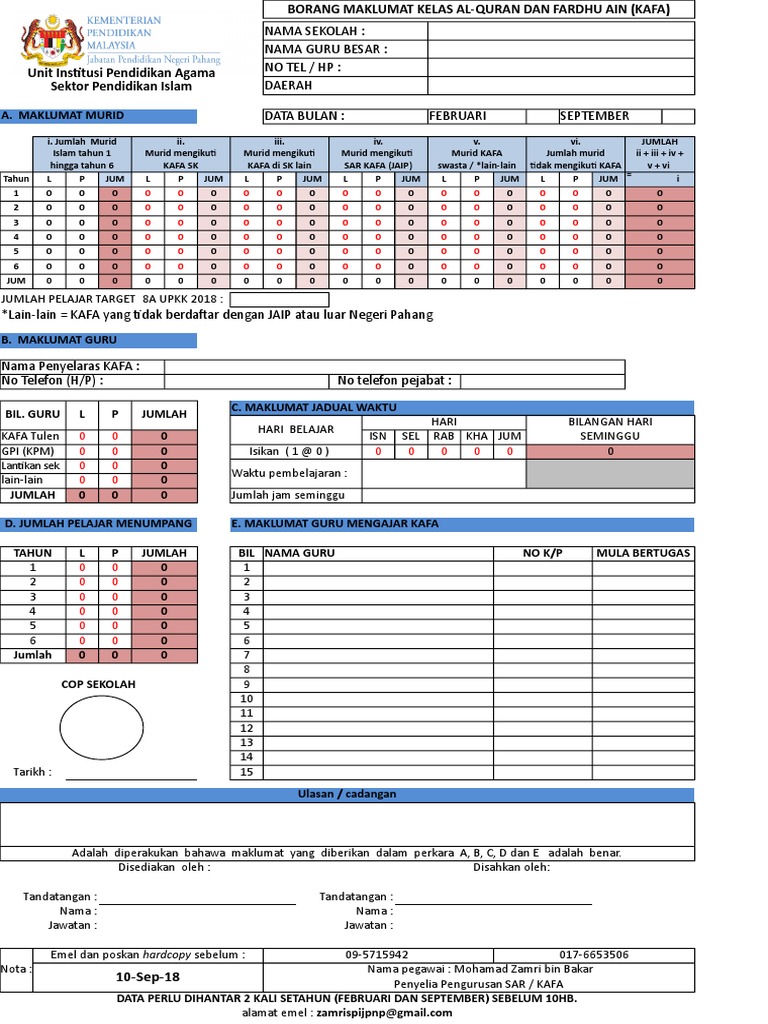 Borang data bulanan guru kafa. Maklumat persekolahan institusi pengajian tinggi tiga 3 yang terakhir. Borang permohonan guru kafa kelas al quran dan fardhu ain gambar ukuran passport warna no. Borang maklumat guru murid dan kelas v3 2016.