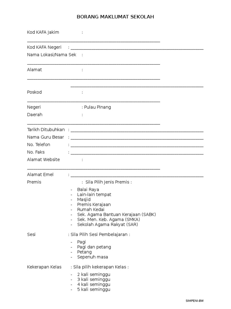 Borang maklumat guru kafa. Borang pertukaran murid kafa. Maklumat kekosongan ini adalah seperti yang diiklankan. Permohonan yang tidak lengkap tidak akan diproses. Manual instrumen pemantauan kafa.