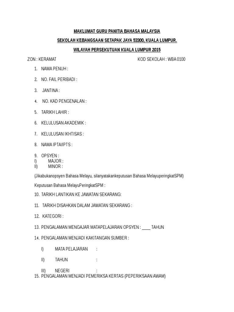 Guru sumber pemeriksa kertas penceramah. Mulai januari 2015 panitia mata pelajaran hanya menggunakan 1 fail am 435 pin1 80 untuk semua urusan surat menyurat dan memo. Borang biodata guru kssr. Minit mesyuarat panitia mata pelajaran.