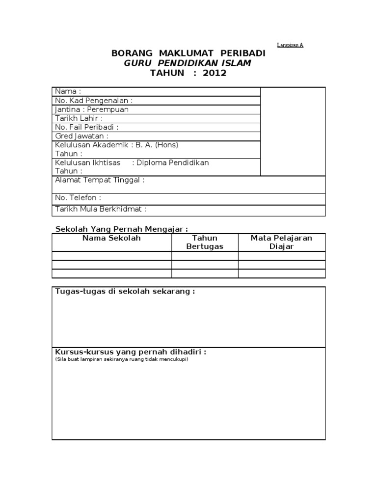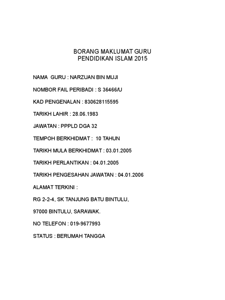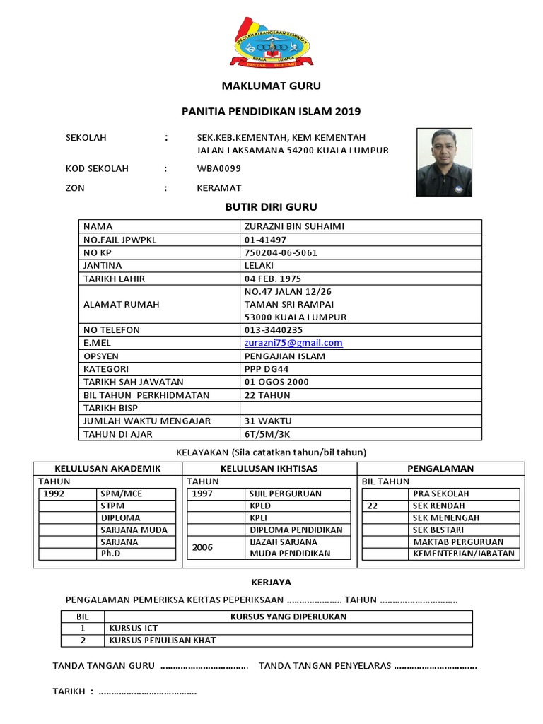 Maklumat bilangan murid kelas guru pendidikan islam. Maklumat guru pembimbing author. Sehubungan dengan itu mohon kepada ketua panitia setiap sekolah untuk mengisi dan melengkapkan melalui borang data maklumat seperti yang dilampirkan di bawah. Panduan panduan untuk guru guru penolong kanan guru besar dan pengetua guru akademik biasa boleh juga diperoleh di pautan ini muat turun.