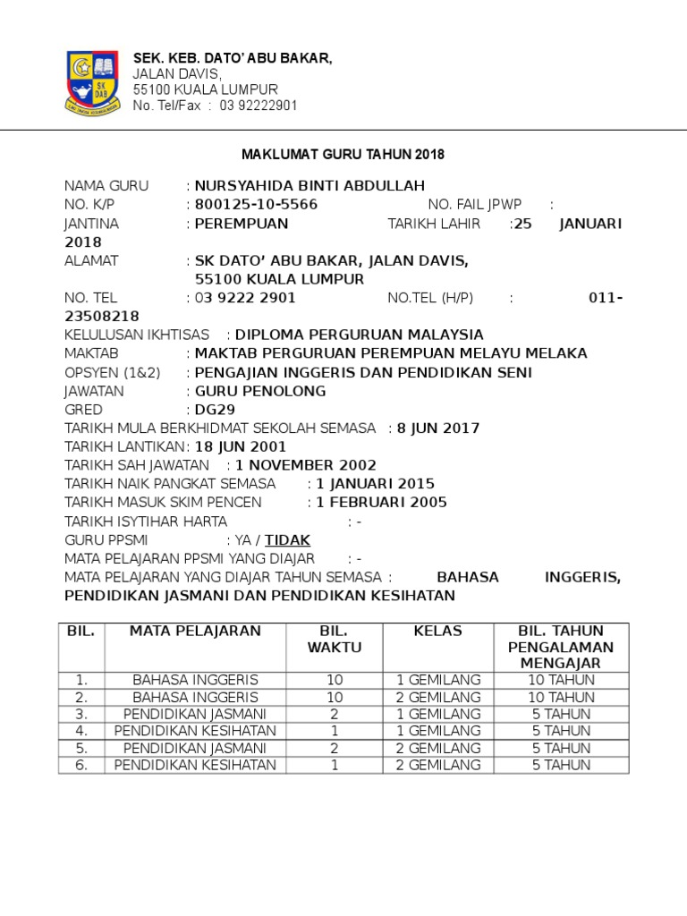 Borang maklumat guru spsk. Edisi kemaskini 2017 pk01 pengurusan panitia pk02 pengurusan jadual waktu. Ikuti panduan bergambar di bawah untuk cara muat turun dokumen lampiran spsk. Borang spsk pk 02 1 borang slip guru ganti ditampal dalam brm 3. Disini saya ingin share contoh borang maklumat buku guru fail rph.