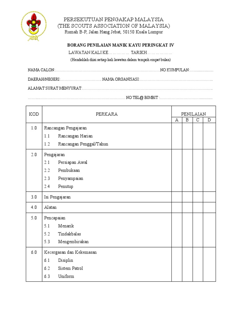 Borang tauliah manikayu bp award dan pengakap raja pemimpin borang tauliah pemimpin ppm 9a borang cv pdf borang cv excel manikayu rekod kepimpinan latihan manikayu baru borang manikayu ii rekod latihan sambil berkhidmat borang manikayu 2 iii borang manikayu 2 1v a borang penilaian manikayu iv lawatan anugerah baden powell bpa. Lantikan memangku hanya dibenarkan pada peringkat 2 talian sahaja umpamanya apabila jawatan a kosong pegawai b dibenarkan memangku jawatan a.