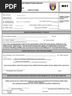 Borang mo1 mo2 ro1 ro2 m01 kej bola sepak msspk 2019 m02 kej bola sepak msspk 2019 r01 kej bola sepak msspk 2019 r02 kej bola sepak msspk 2019 start list kej bola sepak msspk 2019 selamat bertanding manjunghebat. Diakui penama di atas adalah ahli pasukan ini yang menyertai kejohanan pertandingan majlis sukan sekolah sekolah malaysia. Borang pendaftaran individu permainan sukan. Borang m01 dan borang m02 borang pendaftaran merentas desa rasmi borang m01 individu.