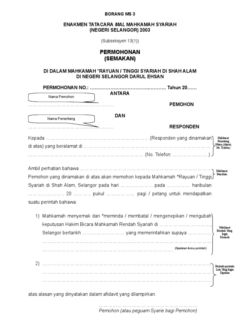Sekiranya terdapat sebarang kemusykilan dan pertanyaan berkaitan sila hubungi pihak mahkamah syariah ditalian 06 333 3333. Pilih kategori borang yang dikehendaki. Enakmen tatacara mal mahkamah syariah negeri selangor 2003 subseksyen 13 1 permohonan semakan di dalam mahkamah rayuan tinggi syariah di shah alam. Jabatan kehakiman syariah perak bangunan mahkamah syariah perak jalan pari off jalan tun abdul razak 30100 ipoh perak.
