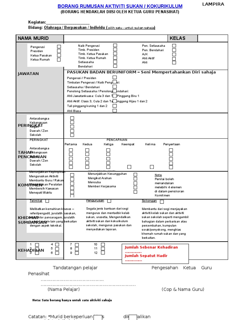 Minimum satu pelajar 3 keping borang untuk rekod kelab persatuan unit beruniform dan rumah sukan. Untuk memudahkan kerja guru kelas minta pelajar menulis nama kelab unit dan rumah sukan yang mereka terlibat. 012 5736398 9737725 9761229. Pajsk yang dibangunkan oleh kementerian pendidikan malaysia kpm adalah pelengkap kepada sistem pentaksiran pendidikan yang merangkumi pentaksiran aktiviti jasmani sukan dan kokurikulum.