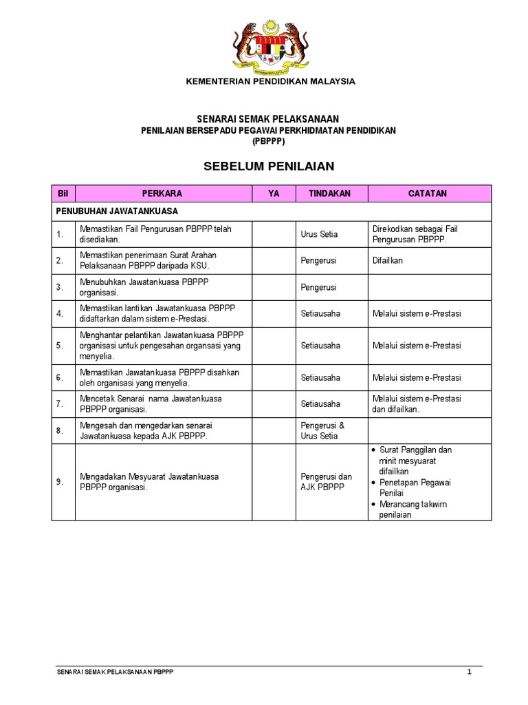 Penilaian prestasi juga menjadi asas penyaluran ppp kepada laluan pengajaran dan pembelajaran laluan kepimpinan dan juga laluan kemahiran pakar bidang subject matter expert sme yang bakal dilaksanakan. Login pbppp kpm. Isi kandungan bil perkara muka surat 1 0 pengenalan 1 1 1 pendahuluan 1 1 2 latar belakang 4 2 0 matlamat 4 3 0 objektif 4 4 0 komponen 5 4 1 standard prestasi 5 4 2 penggubalan instrumen 6 4 3 kerangka konsep 6 4 4 dimensi 7 5 0 tempoh penilaian 7 6 0 kumpulan sasaran 8 7 0 penilai 9 7 1 kriteria pelantikan pegawai penilai 9 7 2 skop tugas penilai 12 7 3 ciri. Item semakan bahan bergantung kepada perbincangan antara pyd dan pp.