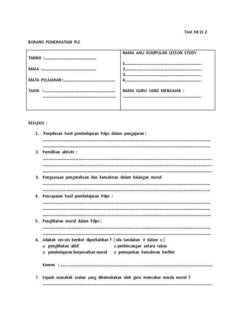Borang pemerhatian plc. Fokus yang telah dipilih dan disetujui bersama. Sila lengkapkan borang berdasarkan refleksi yang telah dijalankan 1. Bukan berjalan kosong sahaja ye. Tandatangan ketua lead walker tandatangan penyelaras plc borang sarana lw 2 borang pemerhatian learning walks 1.