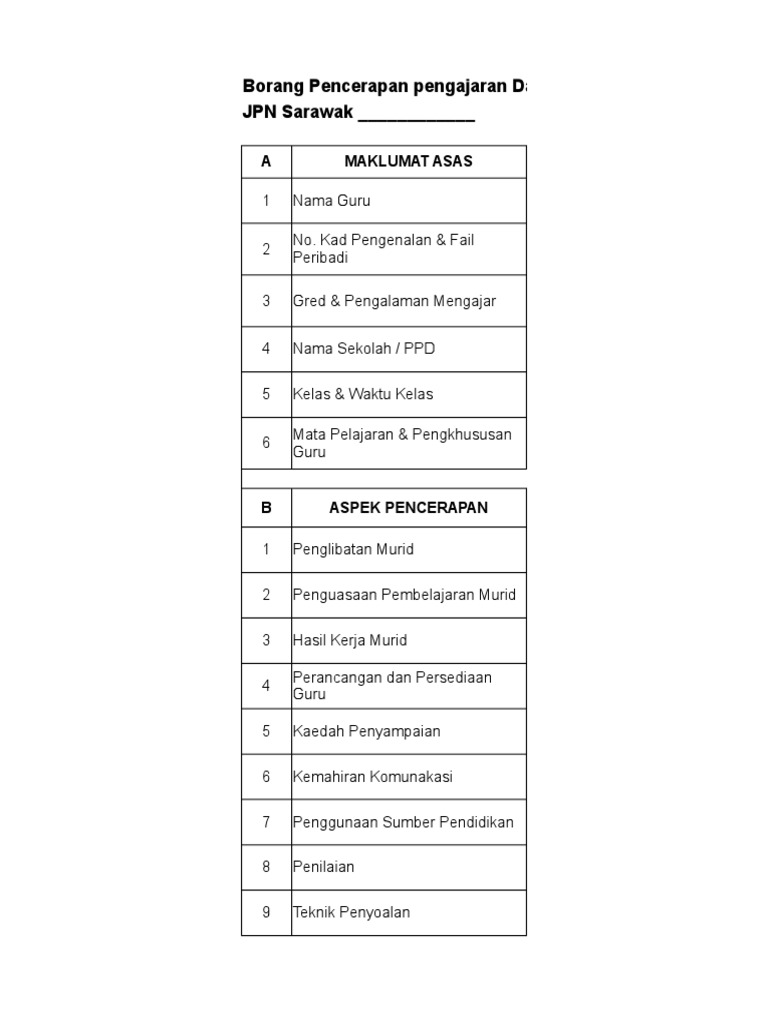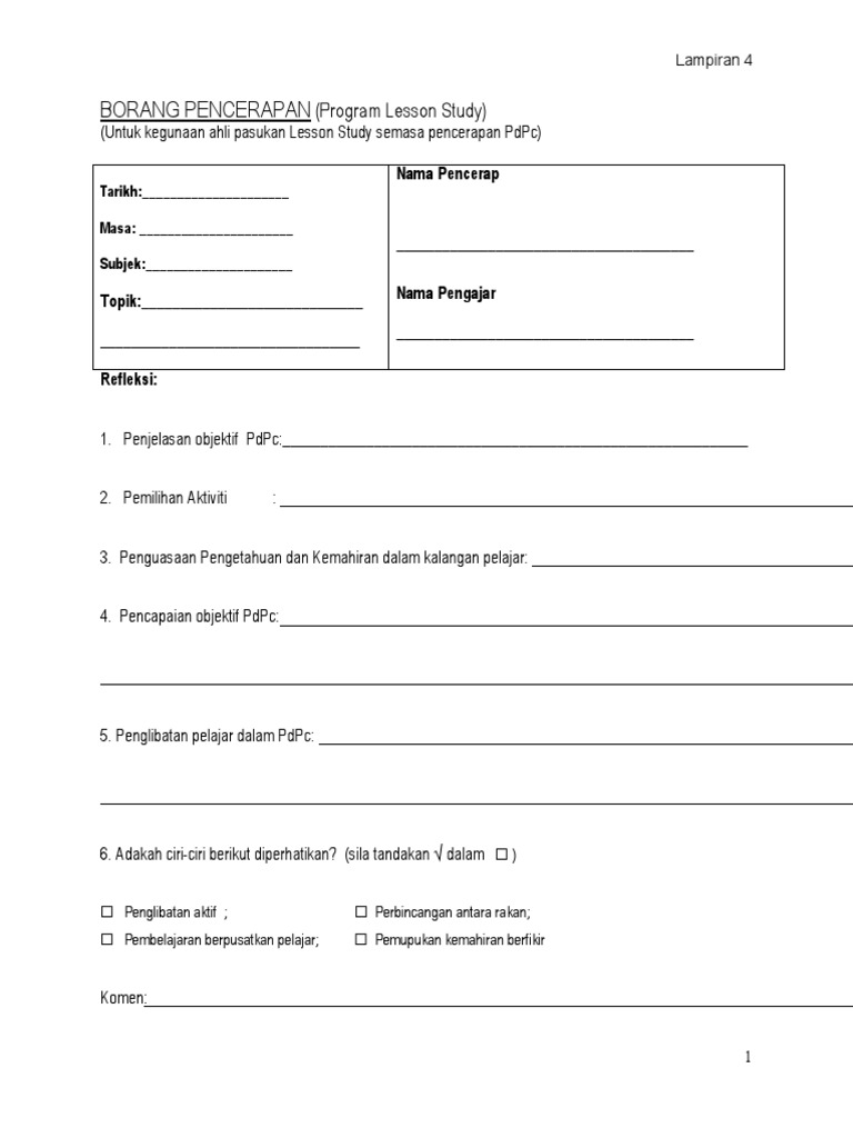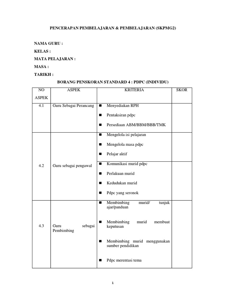2 40 320 petang tempat. Catatan 3 1 2 2 program peningkatan kualiti pengajaran guru diurus secara terancang. Download borang instrumen pemantauan pbs oleh jnjk sebagai rujukanpemantauan kendiri di sekolah masing masing instrumen a hingga f untuk sekolah menengah manakala instrumen a hingga e untuk sekolah rendah berikut disertakan senarai instrumen utama yang akan digunakan semasapemeriksaan khas pbs oleh jemaah nazir jaminan kualiti. Borang pencerapan p p standard 4 tahun 2013 plc teacher sharing session bahasa melayu 2014 t arikh.